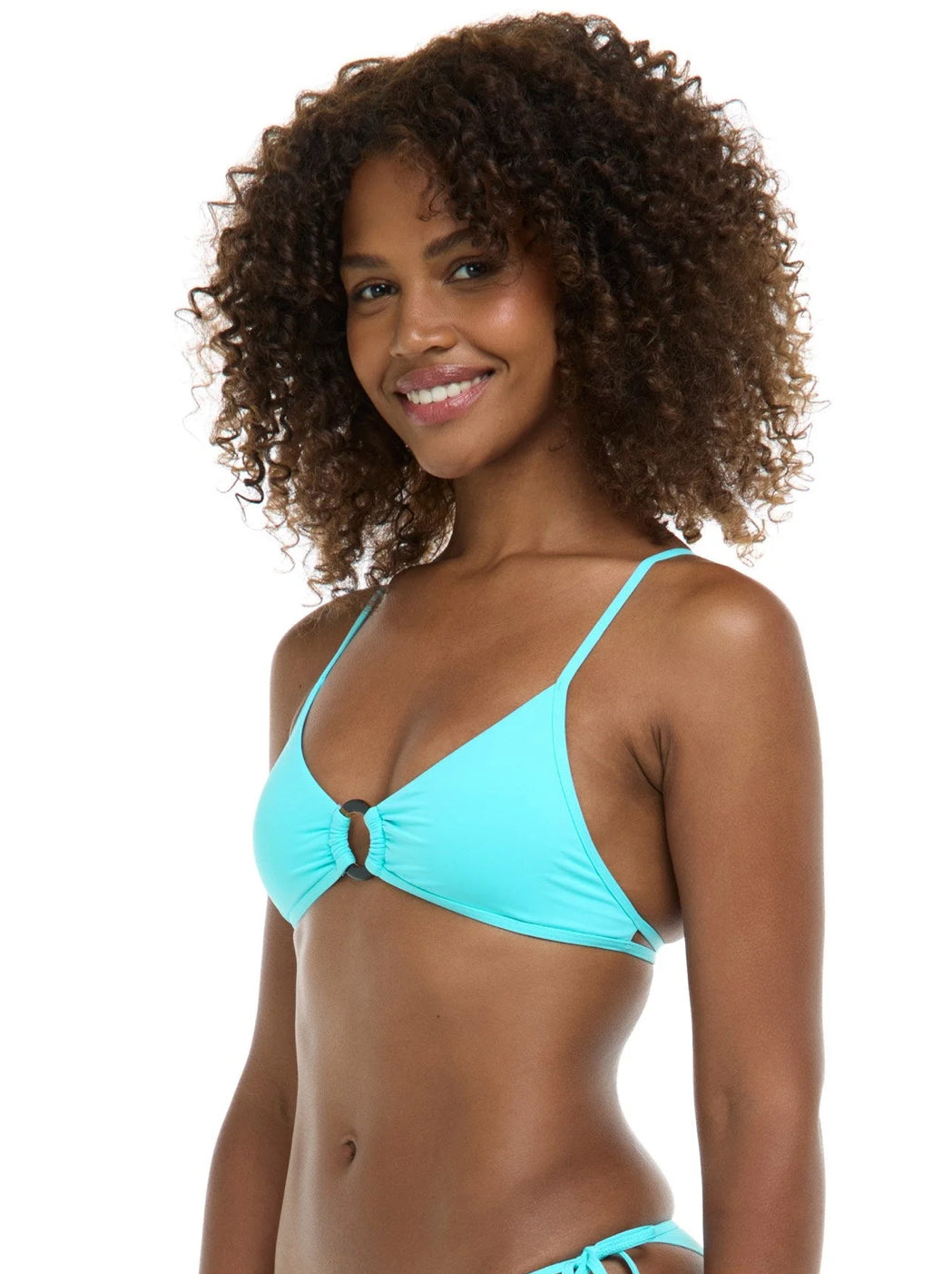 Meet the Arlet top! This fixed triangle bikini features a stylish ring detail, removable soft cups for comfort, and a versatile 2-way tie back for the perfect fit. Perfect for leveling up your beach look and feeling your best all summer long.