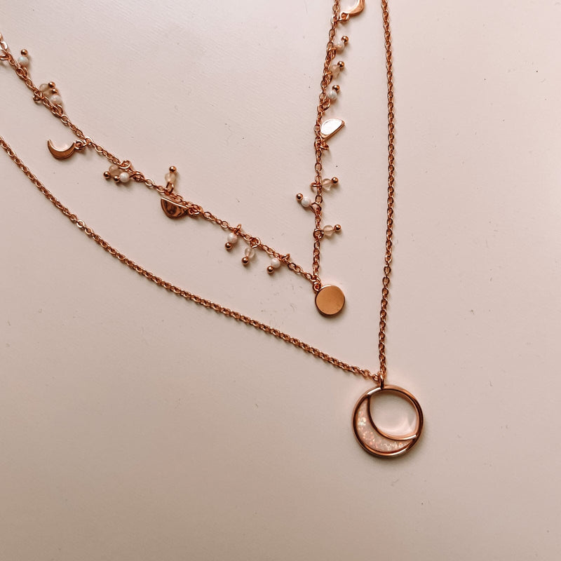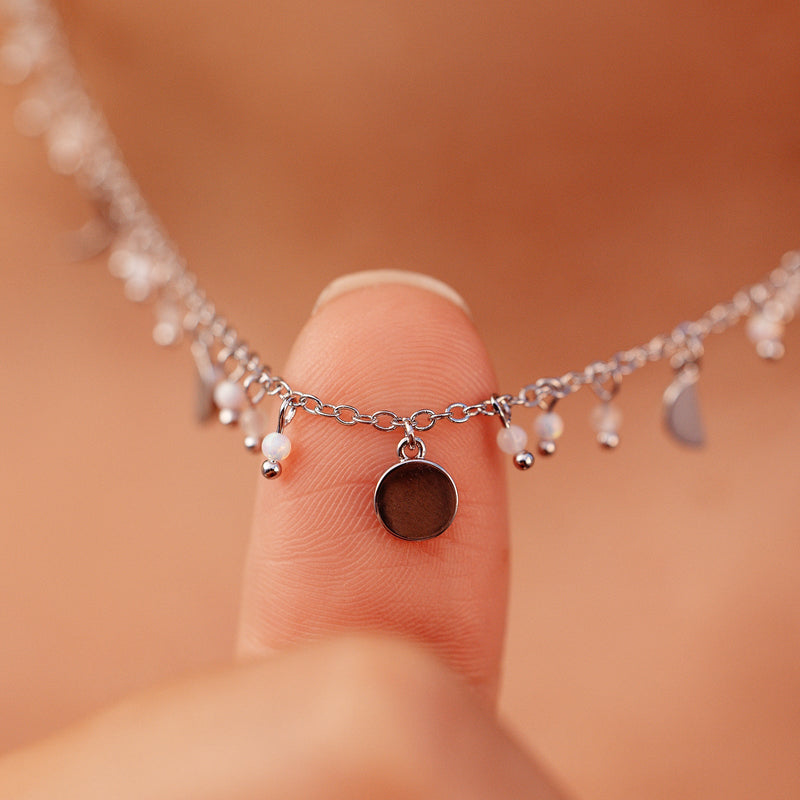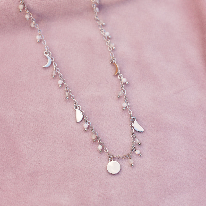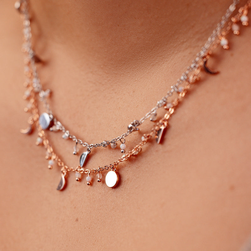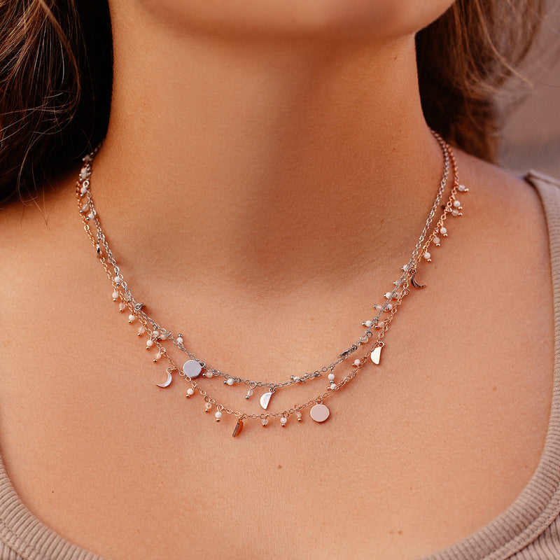 Add some glam to your necklace stack with the Bead & Metal Choker! This piece features mini moon phases with moonstone and opal beads in between, adding a dainty and elevated layer to your look!
