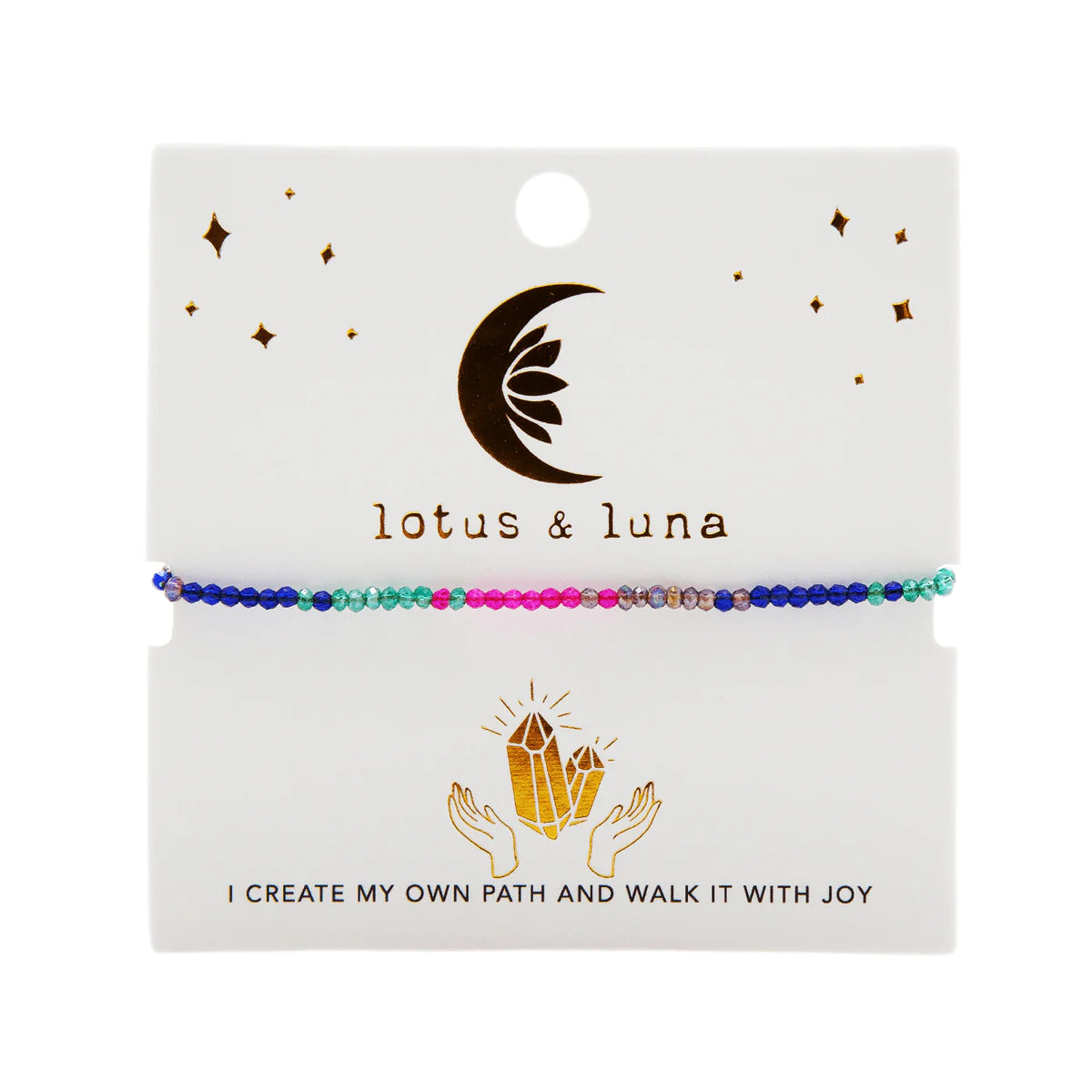Our Goddess Bracelet collection, meticulously crafted to serve as a potent talisman of uplifting affirmations, empowers you on your journey towards embracing your inner goddess. Adorned with an array of graceful crystal beads, this enchanting bracelet seamlessly blends fashion with intention.