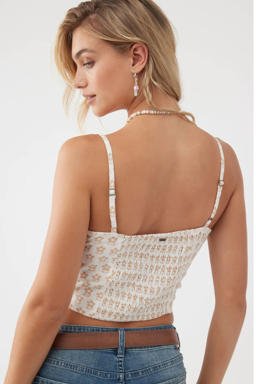 Find some sunshine in this lightweight woven tank. It features a skimmer length fit, allover print and smocking detail at back.