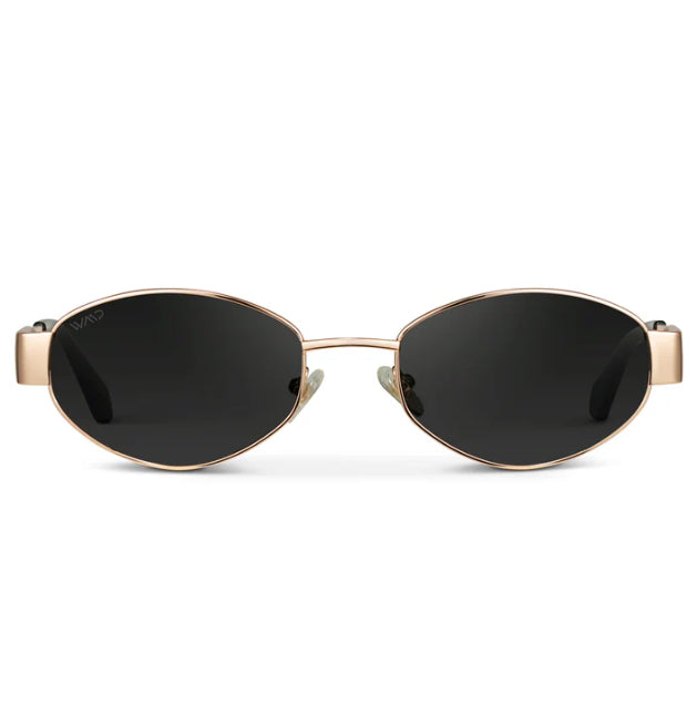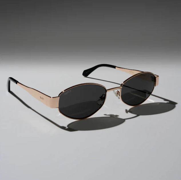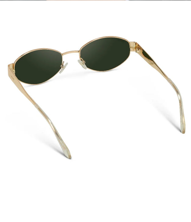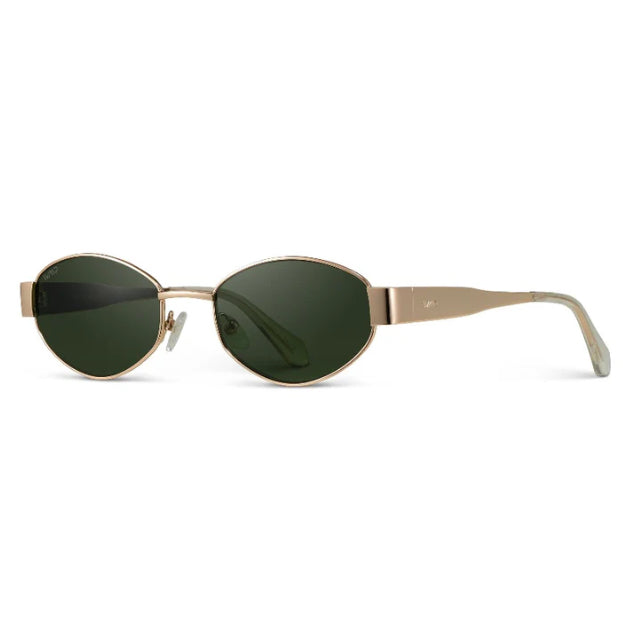 Verona makes a statement with its softly angled oval shape and sleek stainless steel construction. Its chunky gold temples and thick arm pieces are balanced by a thin front-facing frame, for a subtly sophisticated addition to any look.